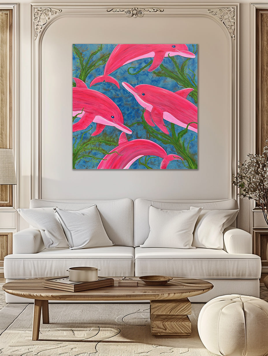 Dive into the playful world of "Curious Dolphins," where the vibrant energy of these intelligent creatures fills your home with a sense of joy and freedom. This artwork captures the dolphins' inquisitive spirit, symbolizing the harmony and beauty of the ocean. The bold colors and dynamic composition invite you to experience the excitement of life beneath the waves, as the dolphins swim freely in a world full of possibility.